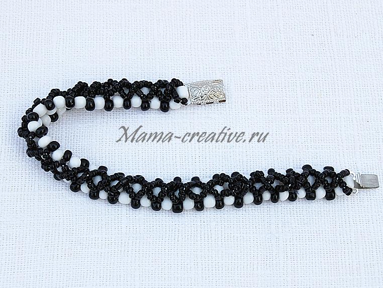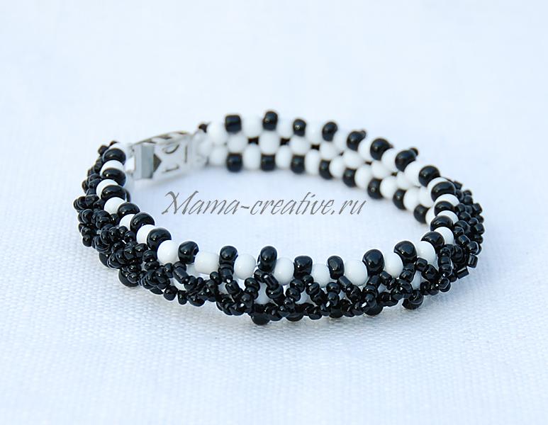 Черно-белый браслет из бисера и бусин.